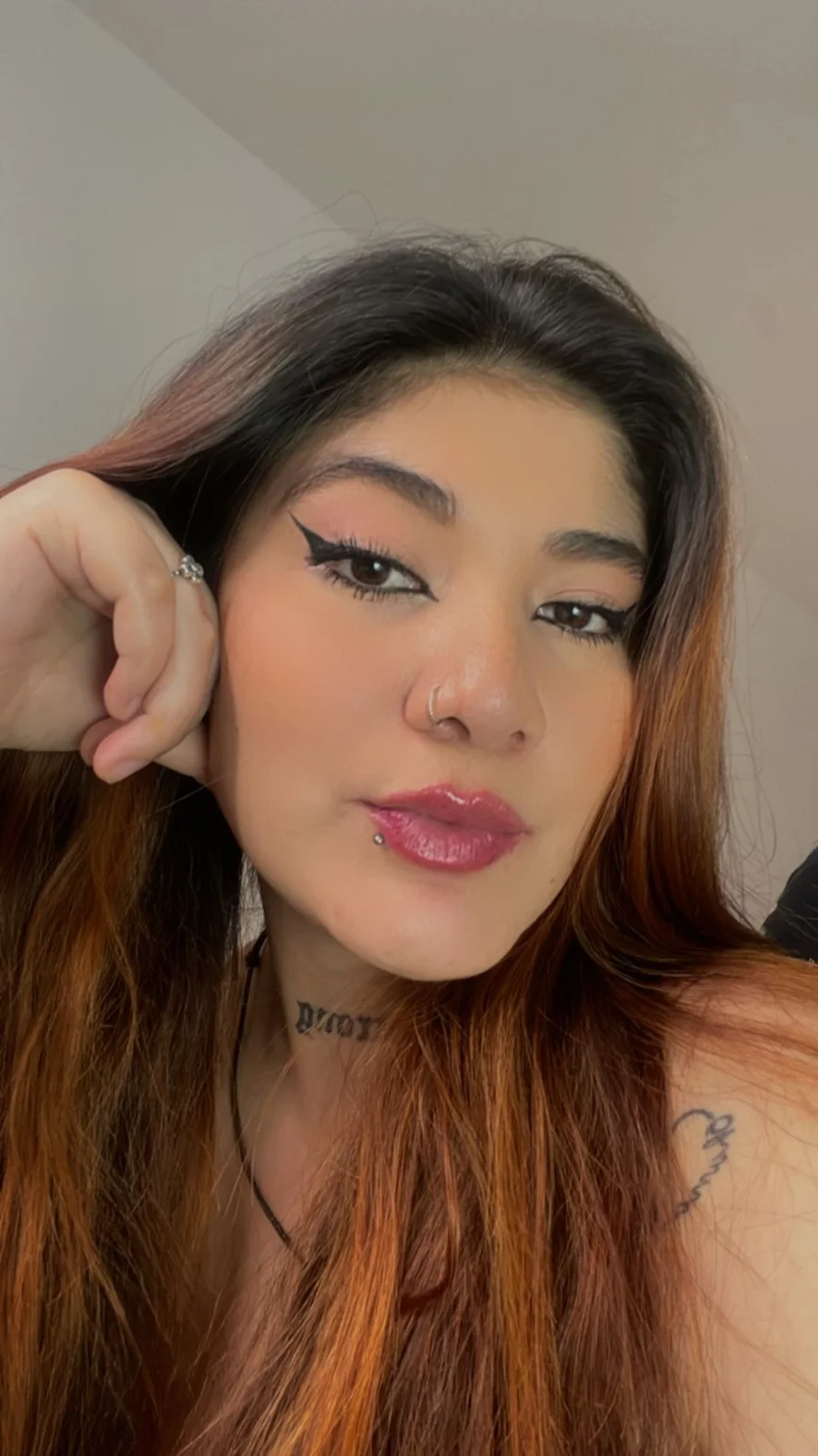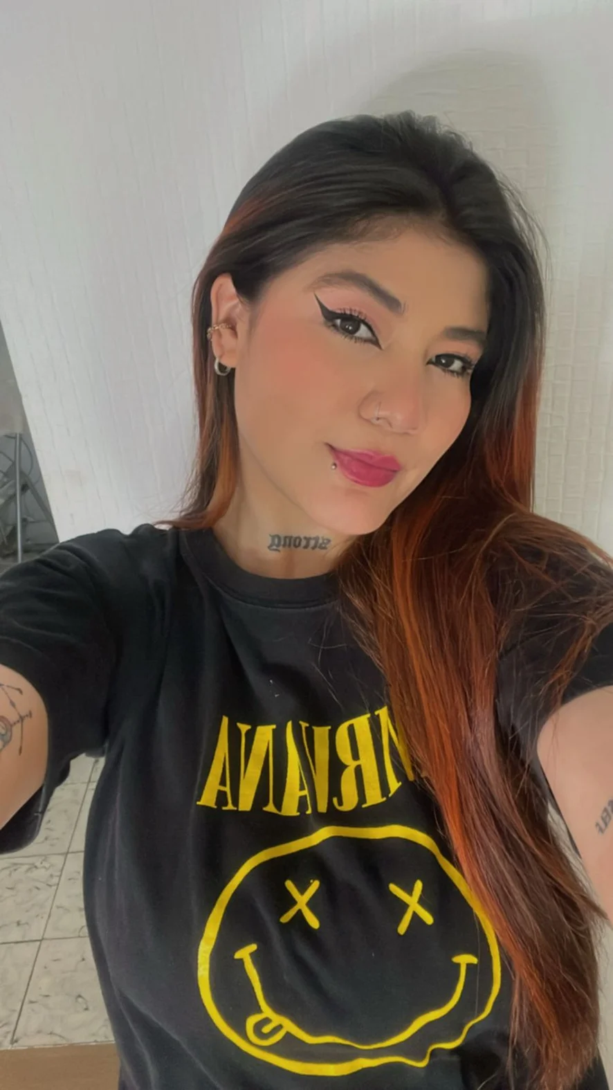 Evely has a captivating gaze, one that captivates without asking permission. Her long hair falls wildly, framing a face that speaks for itself. She has piercings in her nose and mouth, details that further highlight her defiant attitude. Her body is covered in tattoos, like a map of stories only she knows. Every line of ink, every symbol, seems to have a hidden meaning, a part of her soul drawn on her skin.